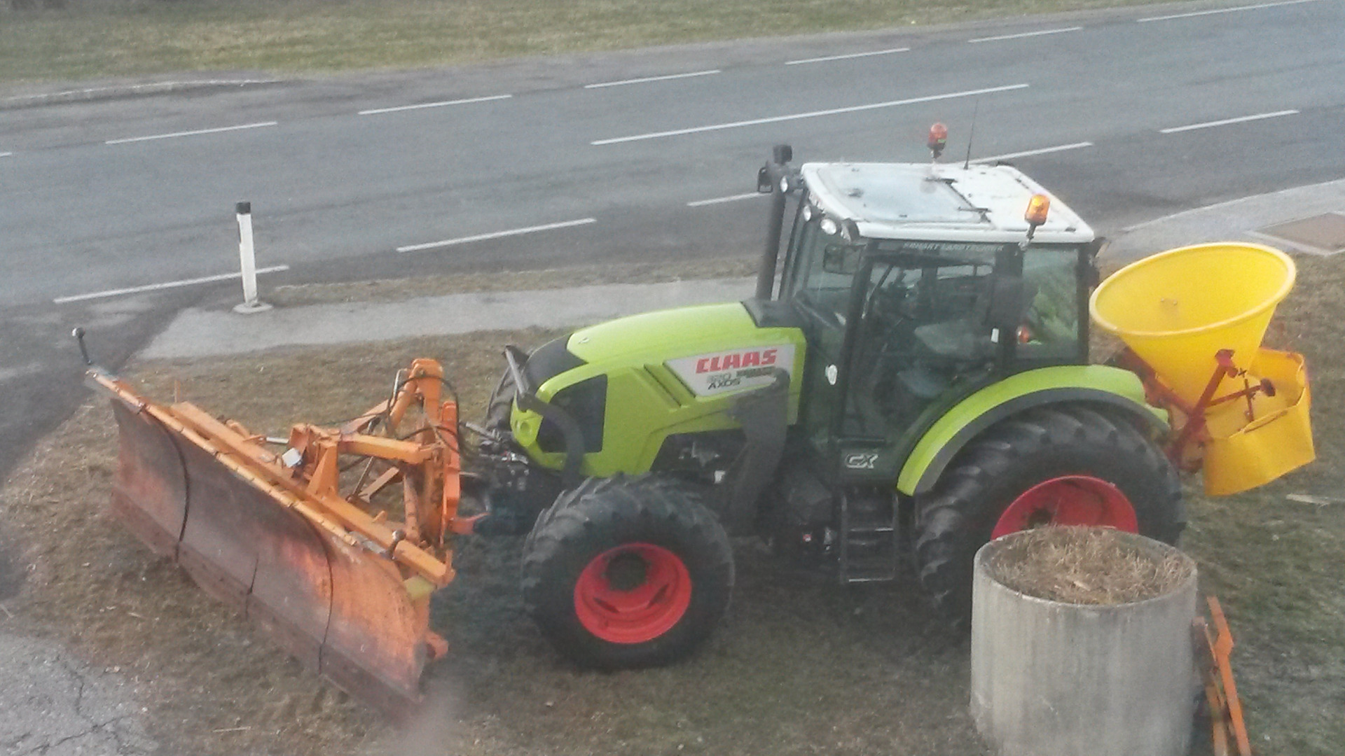 Mehrere Traktoren mit Schneepflug & Salzstreuer sowie Splittstreuer